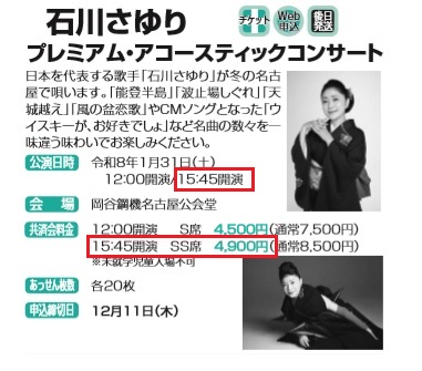 石川さゆり 1/31(土)15:45<SS席>【後日発送】