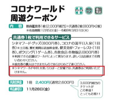 コロナワールド周遊クーポン【後日発送】※シネマワールド中川、大垣、ららぽーと安城では、共通券はご利用いただけません