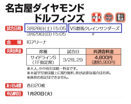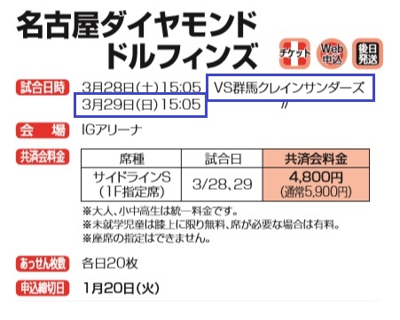 名古屋ダイヤモンドドルフィンズ 3/28(土)15:05 群馬クレインサンダーズ 【後日発送】