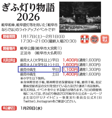 ぎふ灯り物語2026 <前売中高生 平日>【随時発送】