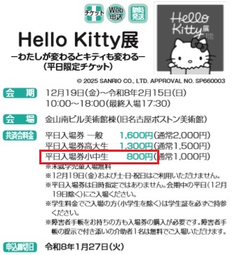 Hello Kitty展 <小中生 平日限定>【随時発送】