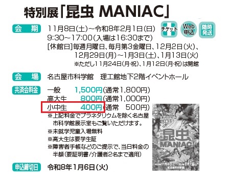特別展「昆虫 MANIAC」 <小中生>【随時発送】