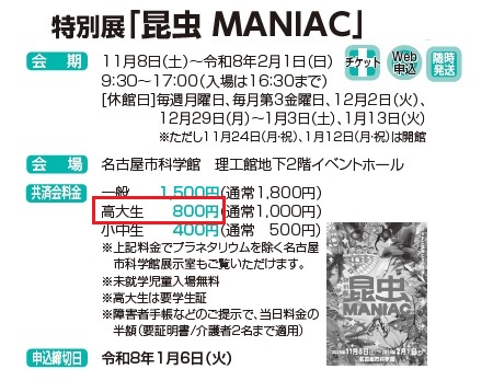 特別展「昆虫 MANIAC」 <高大生>【随時発送】