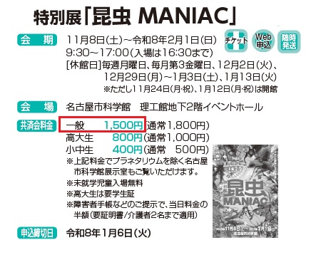 特別展「昆虫 MANIAC」 <一般>【随時発送】